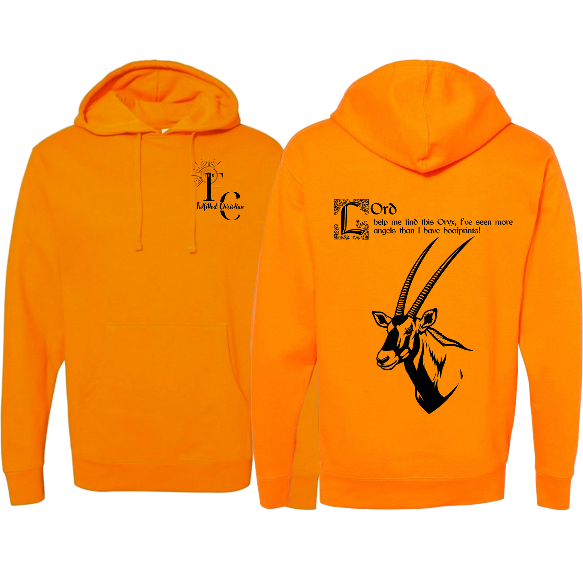 This design is part of the Fulfilled Christian Hunting Line, where faith meets the field. Featuring the Oryx — the Ghost of the Desert — and the words, “Lord, help me find this Oryx, I’ve seen more angels than I have footprints,” this design captures the humor, patience, and perseverance of every faithful hunter who knows the desert tests both spirit and skill.